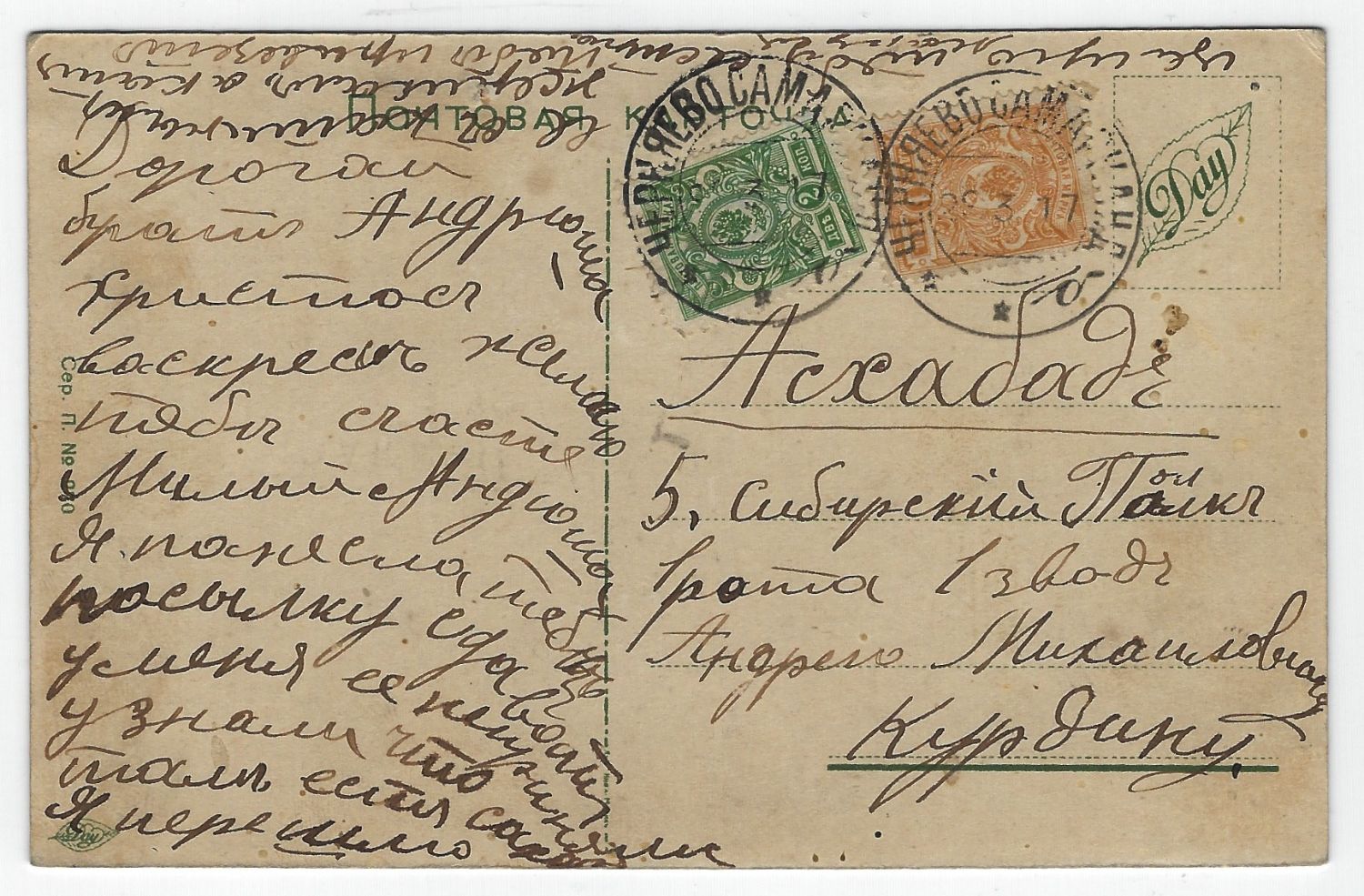 Христос Воскресе! Поздравление солдата с Христовым Воскресеньем. Почтовая карточка, отправленна в 5-й Сибирский полк. 1917 г. Хорошая сохранность. Размер - 9х14 см.
